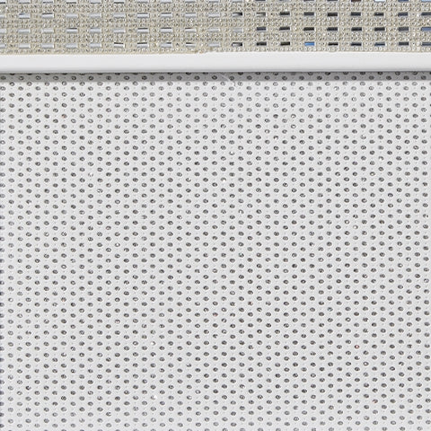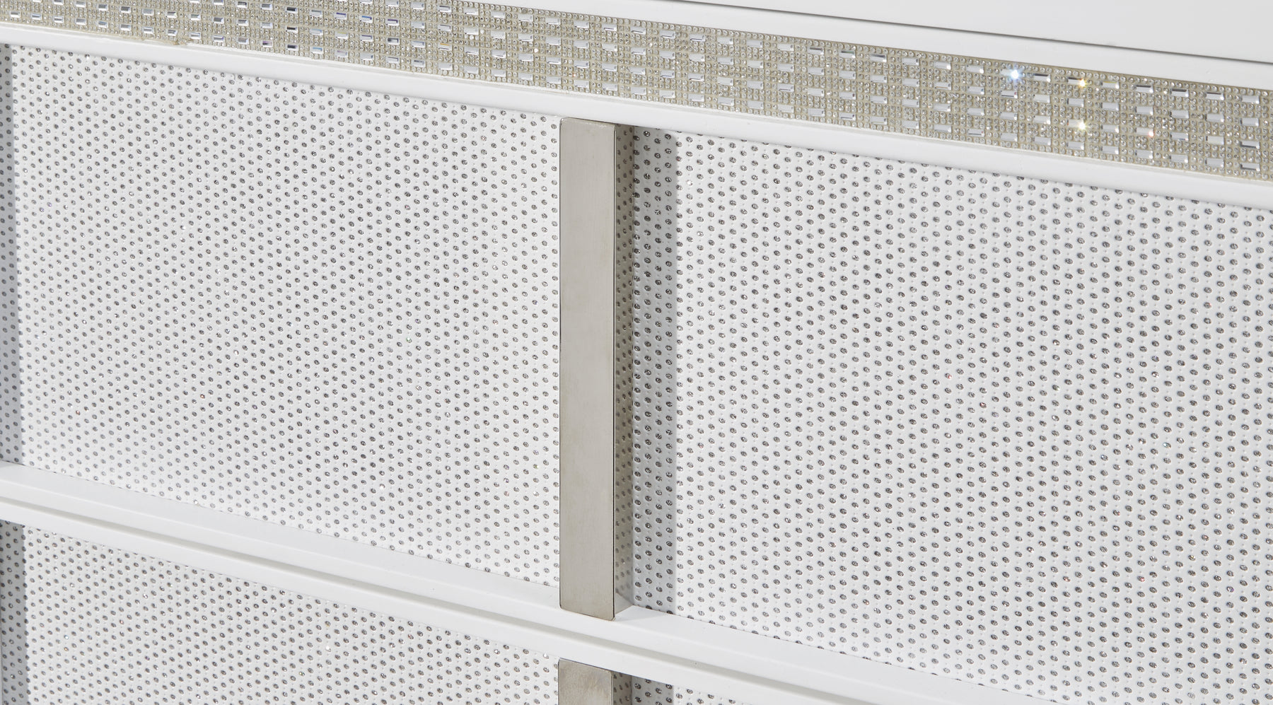 • Drawers with rhinestone frames; textured laminate drawer fronts