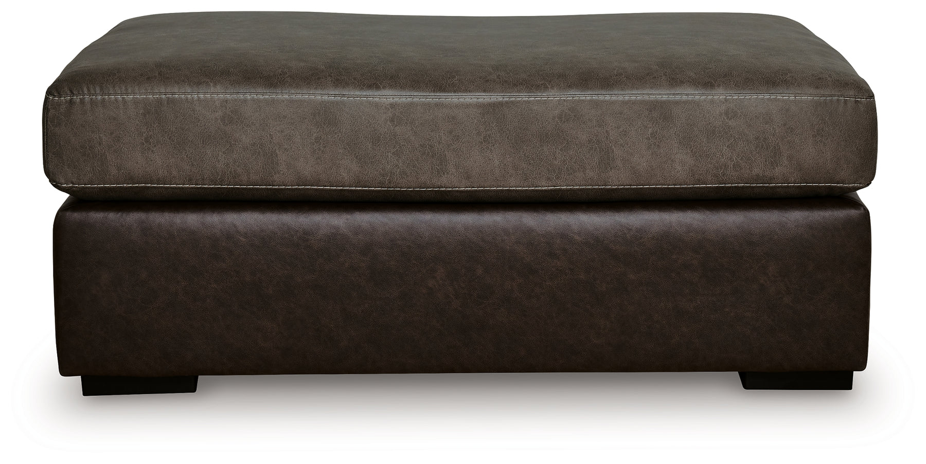 Living room lounging gets a dose of approachable luxury. This sleek oversized accent ottoman is defined by supple faux leather in contrasting rich brown hues, creating a stylish monochromatic look with dimension. From morning coffee to late-night movie marathons, it's sure to elevate the everyday.