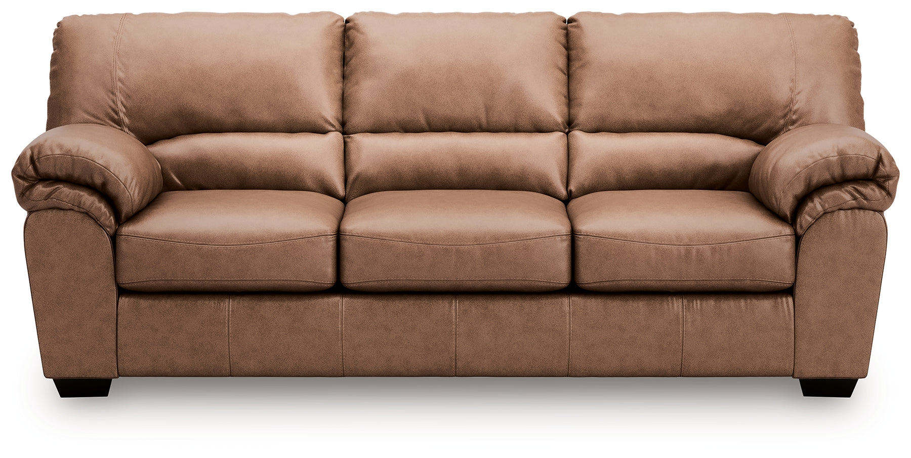 Modern comfort never looked so good. Sporting supremely soft yet durable cushions accented with high-fashion jumbo stitching, this stunning rocker recliner is the ultimate choice in comfortably cool, contemporary style. Its caramel-hued faux leather indulges with an upscale feel and wows like the real thing. And the recliner's pull-tab reclining makes it easy to kick back and relax.